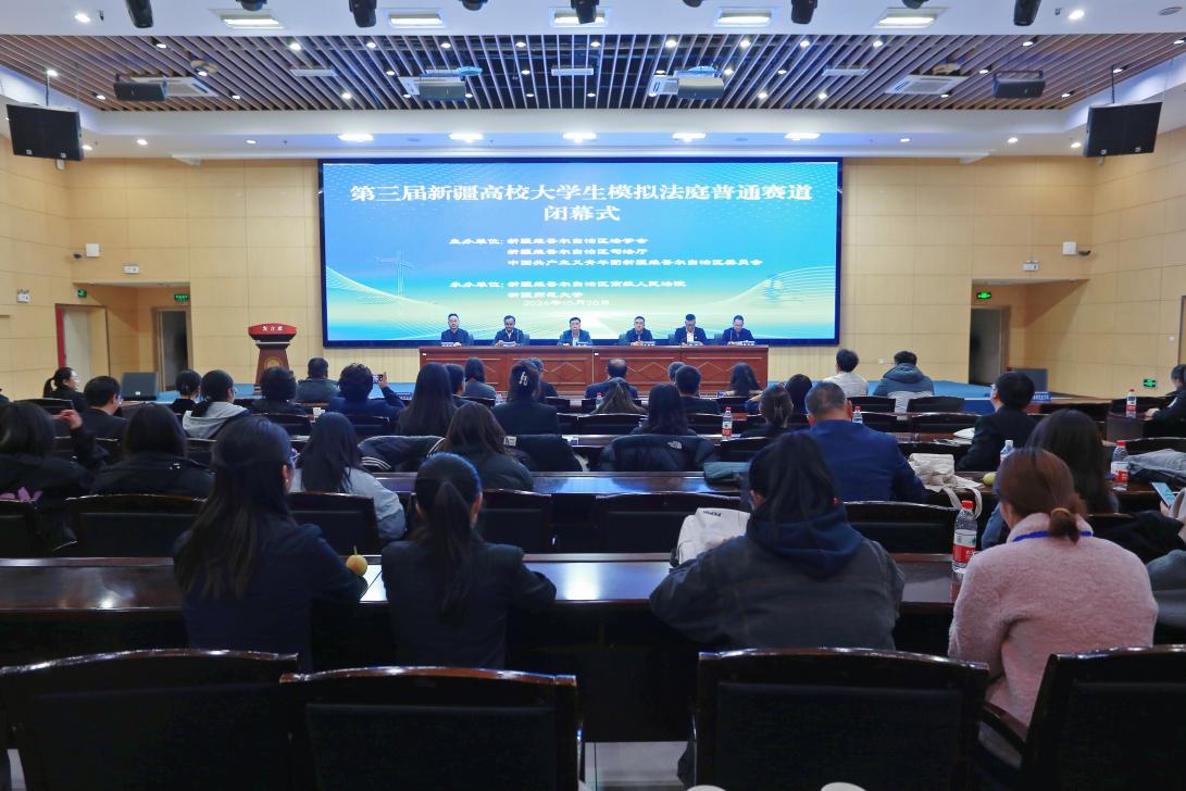 共同承办的第三届新疆高校大学生模拟法庭大赛普通赛道在紧张激烈的角逐后圆满落幕。本次大赛深入学习贯彻习近平法治思想的重要论述,紧扣党的二十大关于法治建设的指导精神,致力于推动法学教育与法治实践的深度融合。全疆12所高校踊跃参与。在两天的赛程中,法学学子们汇聚一堂,充分展现出卓越的法治精神与专业素养。