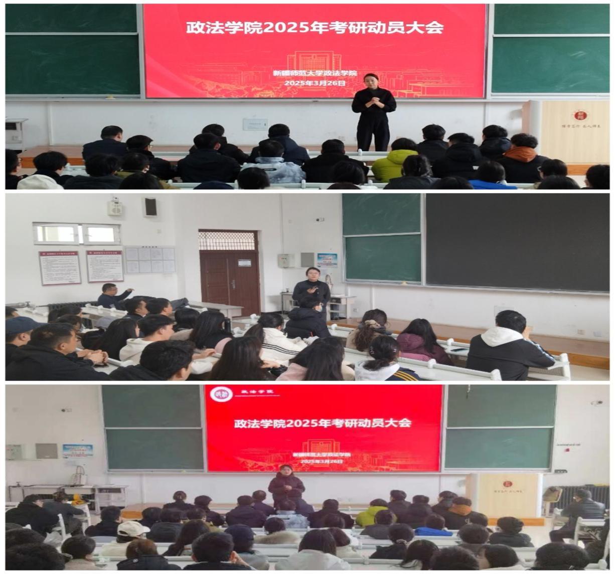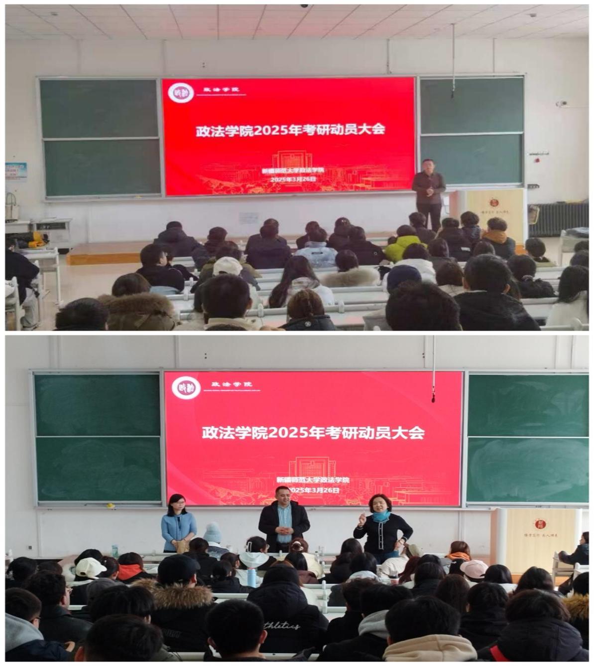 以系、部为单位分别在齐学楼201教室和202教室举行了2026届毕业生考研动员大会,旨在激发学生考研热情,帮助考研学子明晰方向,为其提供宝贵经验与科学策略,助力其实现梦想。考研动员大会分别由系主任张卫红老师和赵立老师主持,学院党委书记唐文睿、学院教学副院长茹克娅·霍加出席,学科负责人、学业班主任及学院2026届毕业生参加了本次活动。