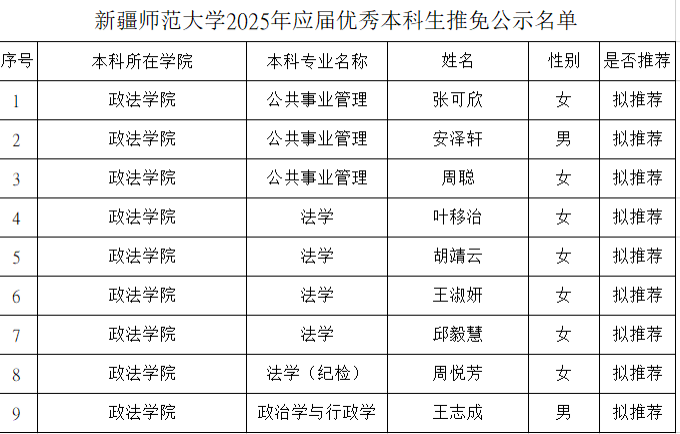 开展了2025年推荐应届优秀本科生免试攻读硕士学位研究生(普通推免)工作。经过个人申请、学院审核,学院党政联席会议研究决定,现将获得2025年免试攻读硕士学位研究生(普通推免)推免资格的学生名单公示如下: